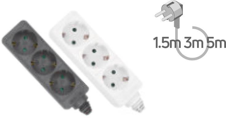 Αριθμός Θέσεων : 3 Μέγιστο Φορτίο : 3680W Μήκος καλωδίου : 5m Πιστοποιητικά : GS Βαθμός Προστασίας : IP20 Χρώμα : Λευκό Χαρακτηριστικά : Πολύπριζο 3θέσεων χωρίς διακόπτη με καλώδιο 5m Ρεύμα : 16A Τάση : 250V AC