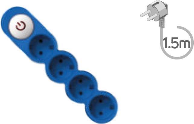 Πολύπριζο 4 θέσεων με διακόπτη και καλώδιο 1.5m μπλε ΗΟΜΙΕ