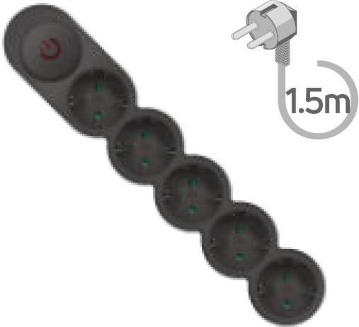 Πολύπριζο 5 θέσεων με διακόπτη και καλώδιο 1.5m μαύρο ΗΟΜΙΕ