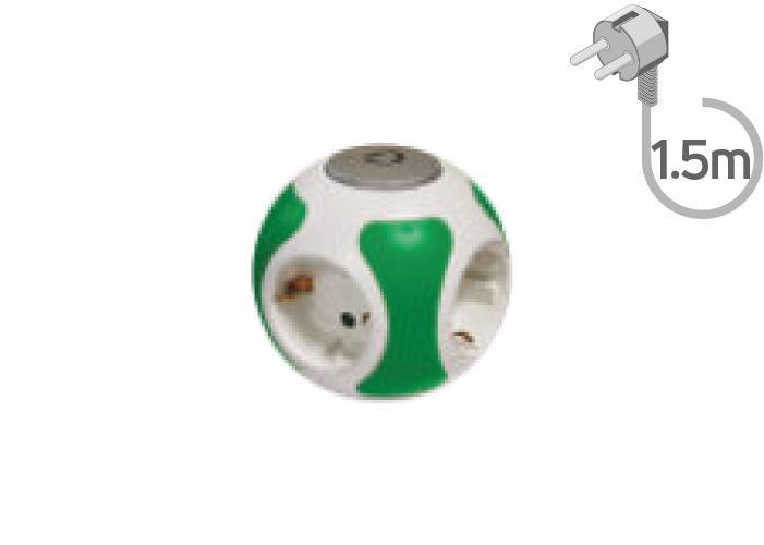 Πολύπριζο 4 θέσεων με διακόπτη και καλώδιο 1.5m πράσινο KICKO
