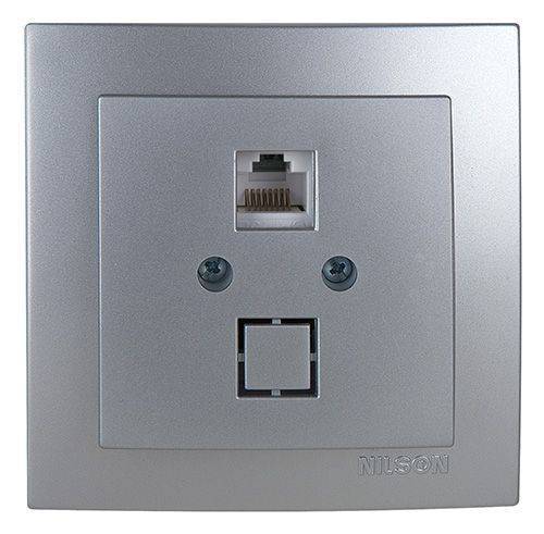 Πρίζα Τηλεφώνου Διπλή Ασημί