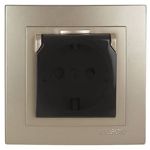 Πρίζα Σούκο Προστασίας με Καπάκι Σατινέ